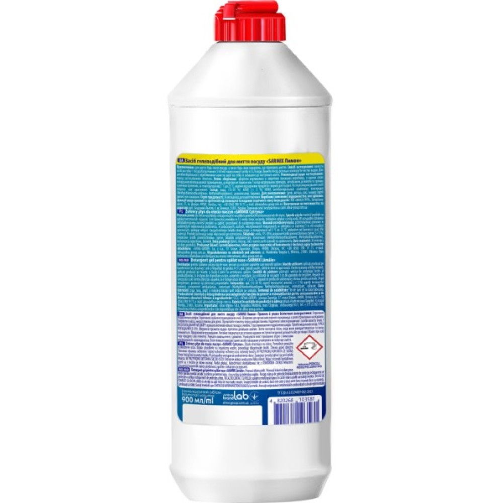 Засіб, ручного, миття, посуду, Sarmix, Lemon, 900, мл, 4820268103581