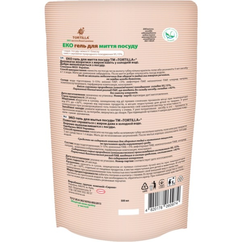 Еко-гель-бальзам для миття посуду Tortilla об'ємом 500 мл забезпечує бездоганний блиск та чистоту вашого посуду. Оснащений унікальною універсальною формулою, цей засіб легко видаляє жир і пригорілі забруднення навіть у холодній воді, не залишаючи розводів. Завдяки безпечним компонентам, які схвалені МОЗ України, він не шкодить шкірі і швидко змивається, що робить його ідеальним вибором для щоденного використання.