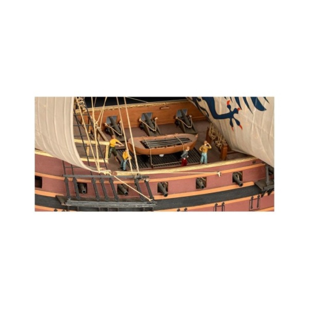 Комплектація та додаткові можливостіКомплектація моделі включає 306 деталей, що дозволяє створити максимально реалістичну репліку галеона. Інструкція, що додається, пропонує покрокові вказівки, що полегшують процес складання. Вага моделі складає 1,9 кг, що робить її стійкою та зручною для демонстрації на поличках або виставках.