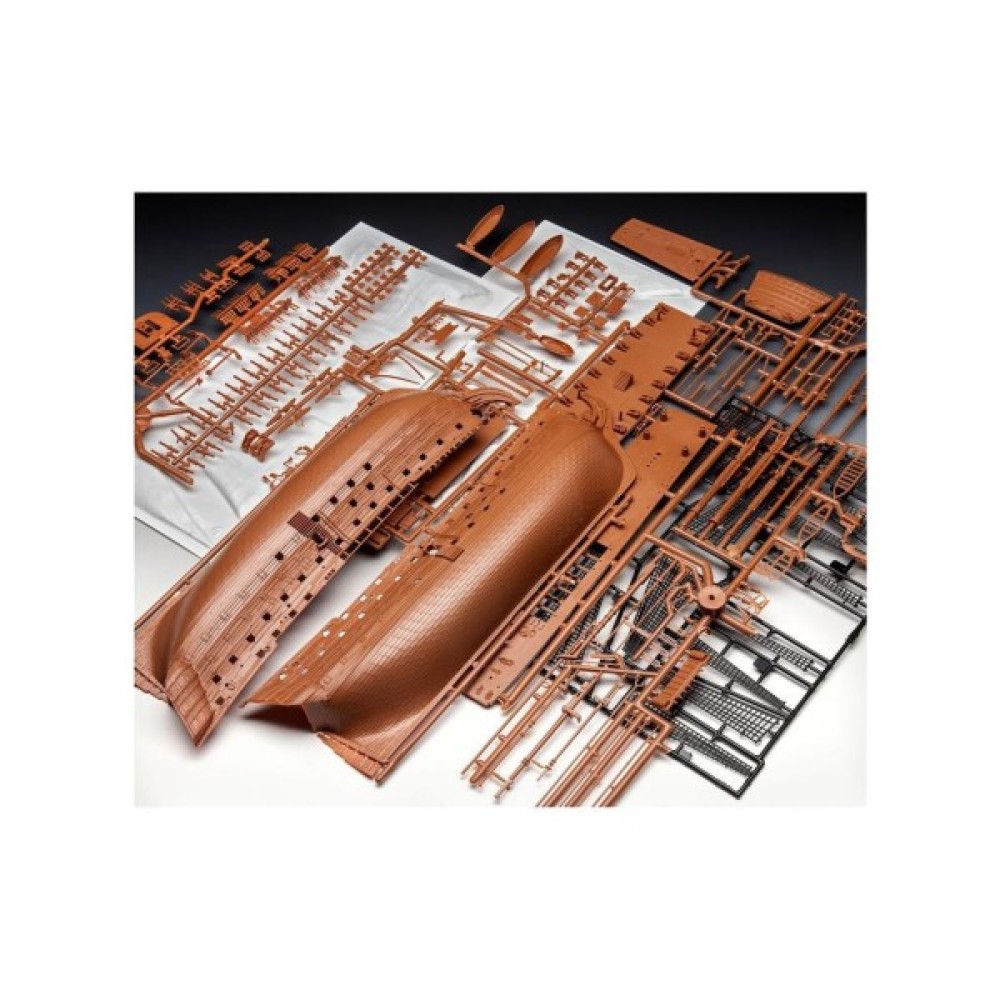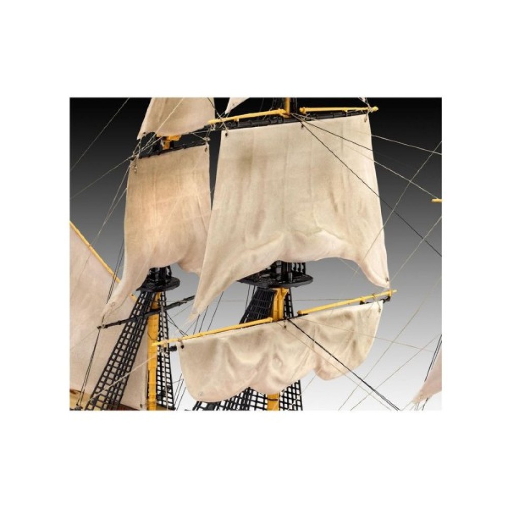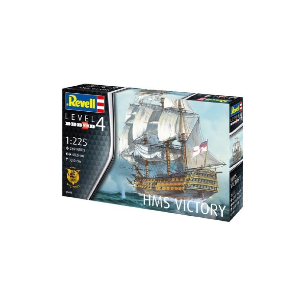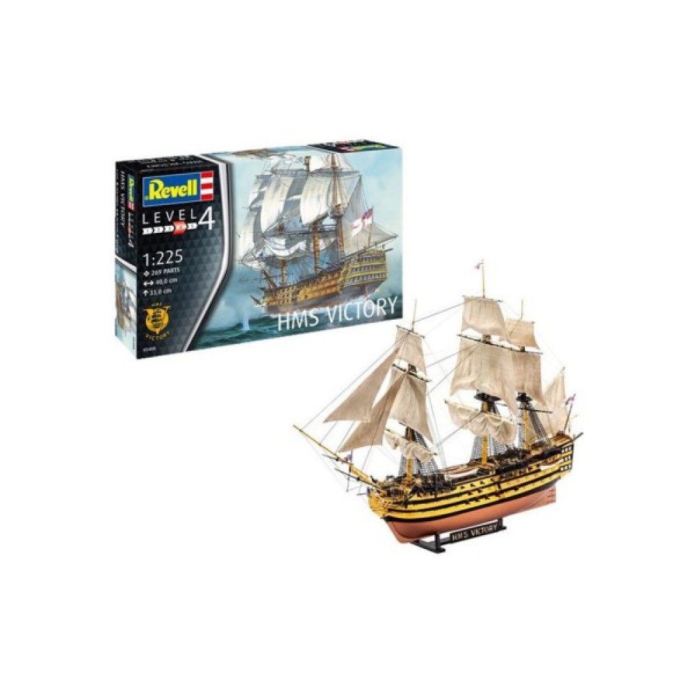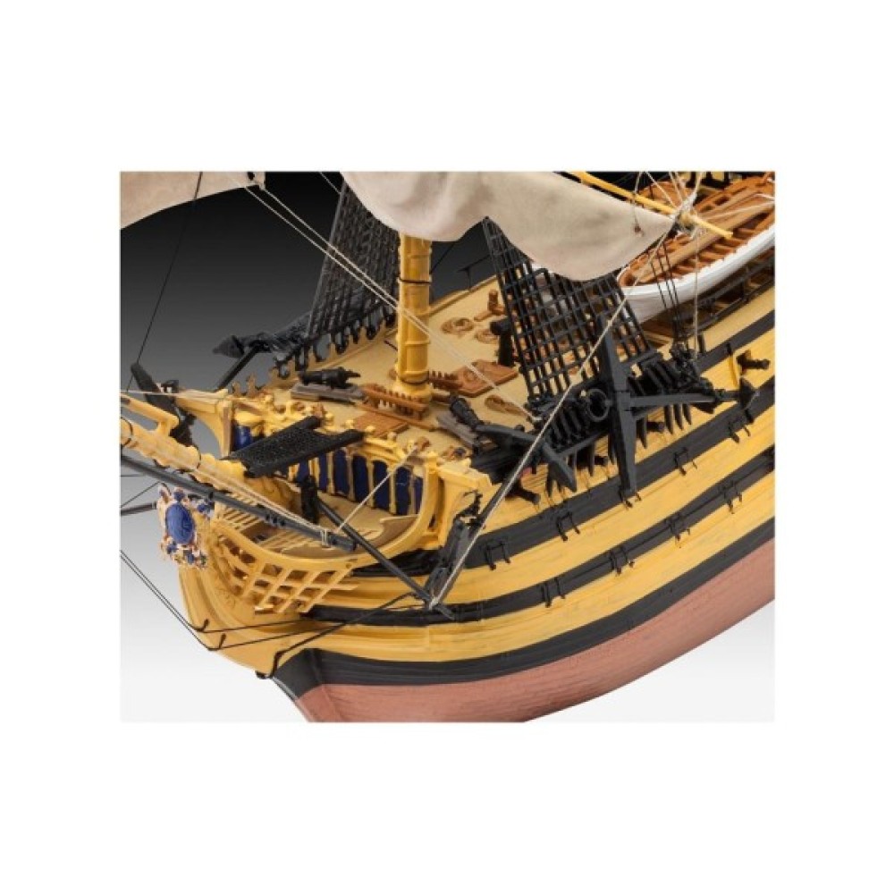 "Перемога" стала флагманом адмірала лорда Нельсона в битві при Трафальгарі в 1805 році. Маючи цей корабель на чолі свого флоту, він досяг вражаючої перемоги над наполеонівськими кораблями, але був смертельно поранений. "Перемога" збереглася до наших днів і пришвартована в Портсмуті, Англія. - структурований корпус з двох частин; - палуба з імітацією під дерево; - деталізовані палубні будови; - гармати на кріпленнях; - деталізовані щогли; - автентичні вітрила; - такелажна нитка в комплекті; - рятувальні човни; - такелаж; - вітринна підставка; - чотири якоря; - прапор; - автентичні декалі.