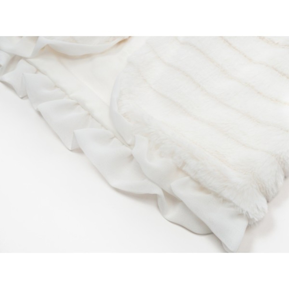 Красивий хутряний жилет кремового кольору, прямого силуету, з дуже легкого та ніжного штучного хутра (100% поліестер) на трикотажній підкладці (100% бавовна).