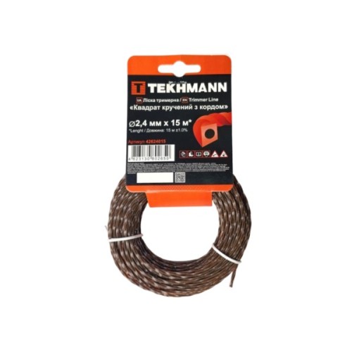 Ліска Tekhmann 2,4 мм із крученою квадратною формою та внутрішнім кордом ідеально підходить для обробки середньої жорсткості трави, бур’янів та сухостою. Спеціальна скручена конструкція підвищує точність і рівномірність зрізу, а вбудований корд додає міцності та зносостійкості, зменшуючи ризик обриву під час інтенсивної роботи. Ліска сумісна з більшістю бензинових, електричних і акумуляторних тримерів, що робить її універсальним рішенням для садових робіт.