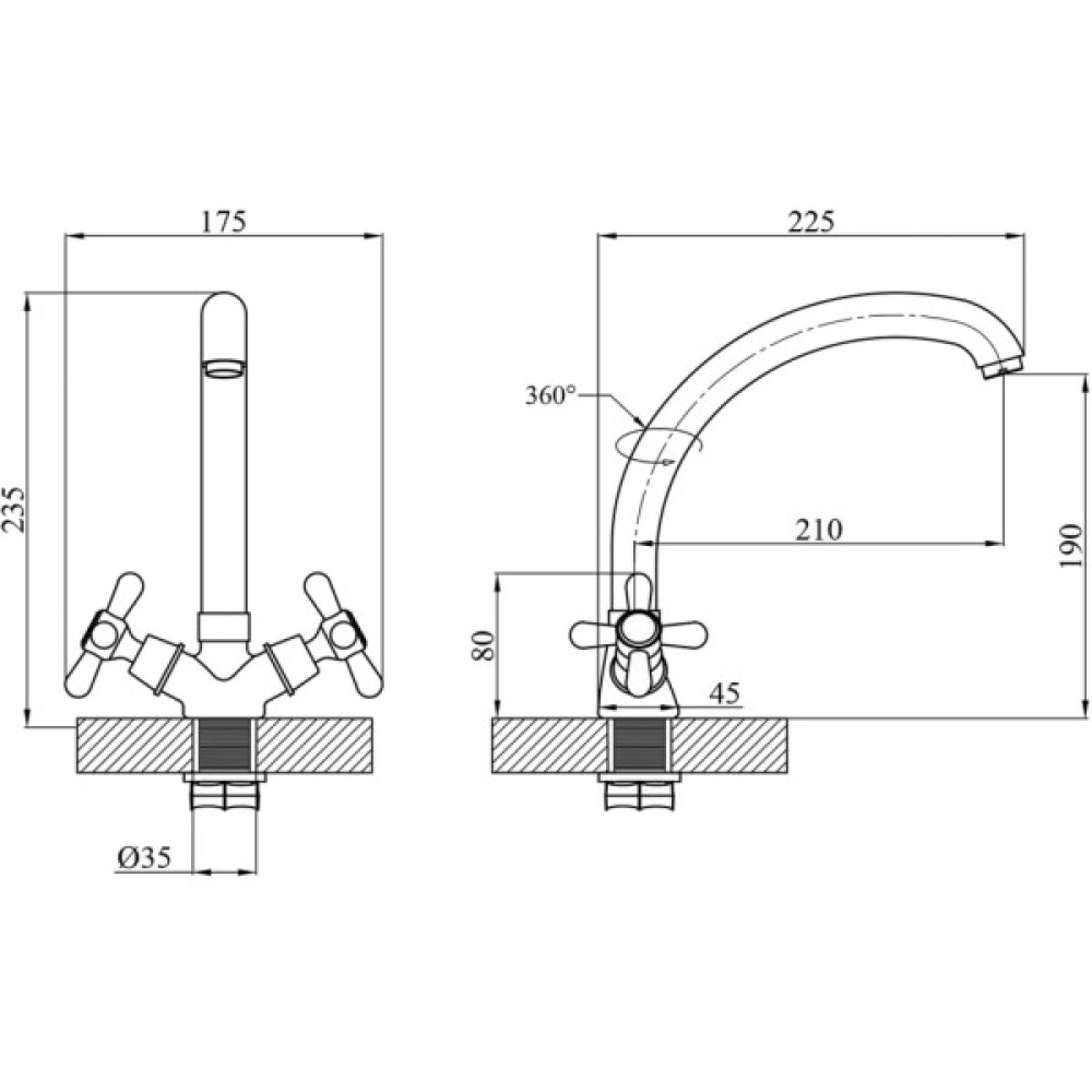 Посадковий діаметр змішувача 35 мм