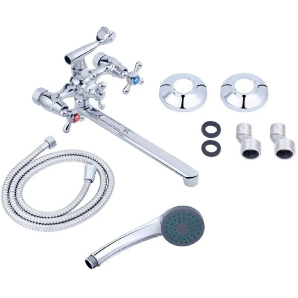 Комплект поставки змішувач; s-подібні ексцентрики; душовий шланг; інструкція; декоративні чашки; тримач для ручної лійки