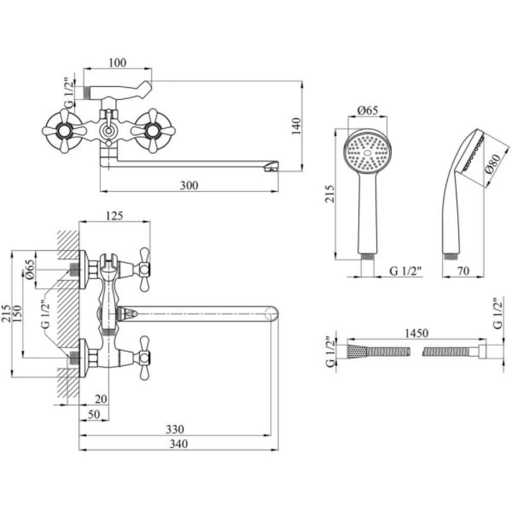 Додаткові характеристики аератор; перемикач ванна/душ; кран-букса; бічне відведення для під'єднання душового шланга під діаметр 1/2" інтегрований з тримачем для ручної лійки