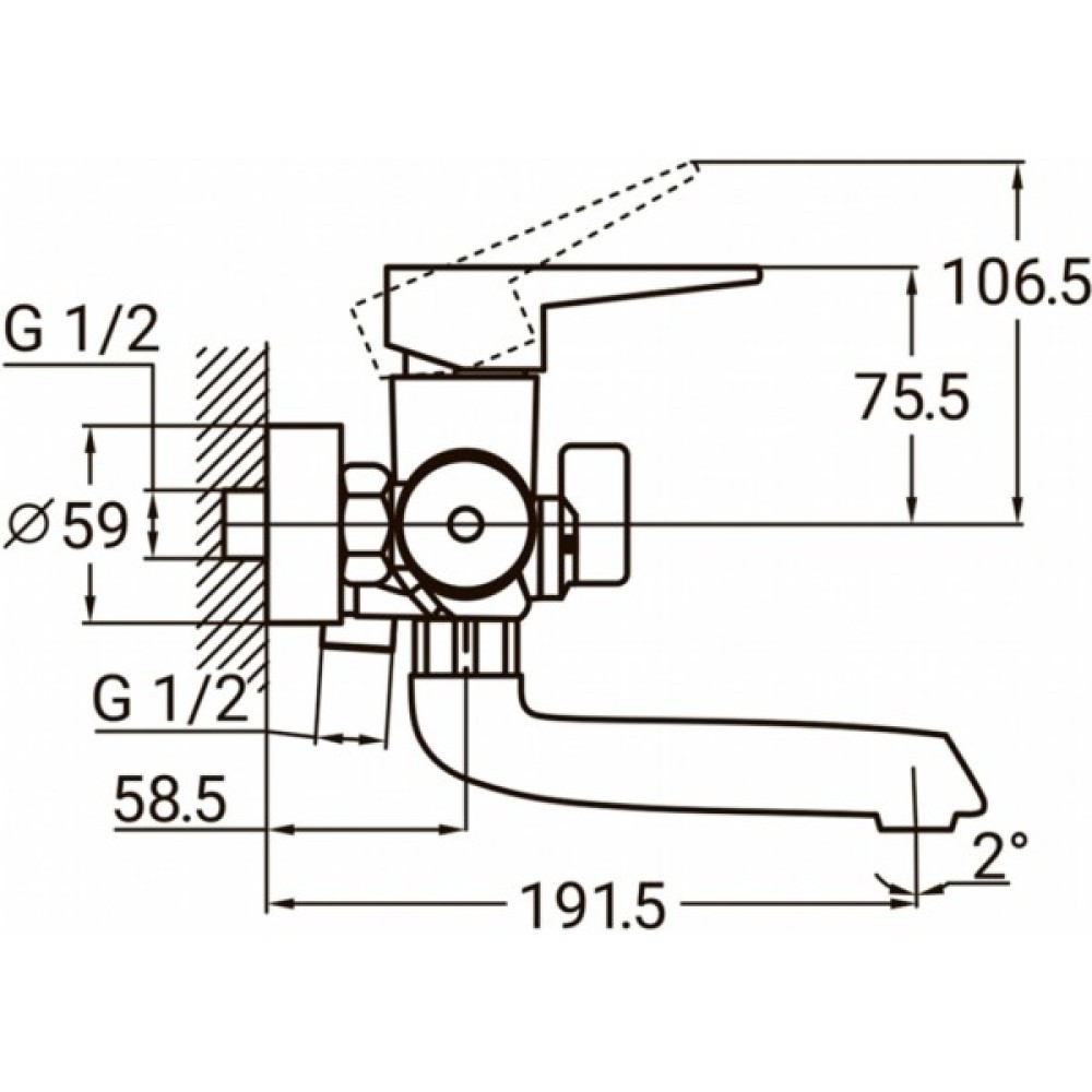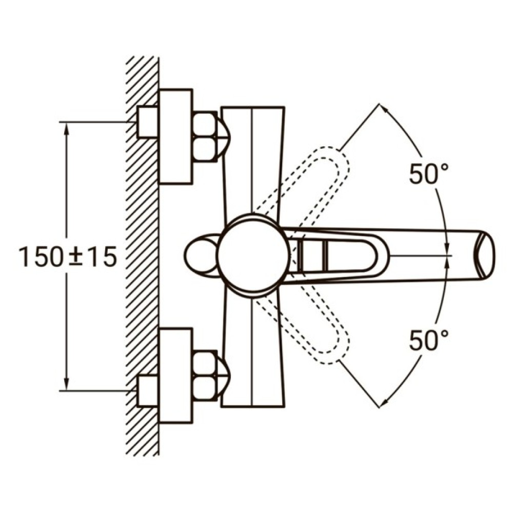 Змішувач комплектується однорежимною ручною лійкою з настінним тримачем і душовим шлангом завдовжки 150 см в металевому обплетенні.