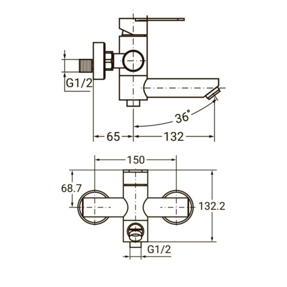 Подача води здійснюється за допомогою важеля, а перемикання «душ-кран» забезпечує картріджний дивертор. Незважаючи на короткий вилив (довжина 100 мм), він є поворотним, а також обладнаний сіточкою-аератором. Такий змішувач для ванної неодмінно сподобається шанувальникам «хай-тека» і «лофт».