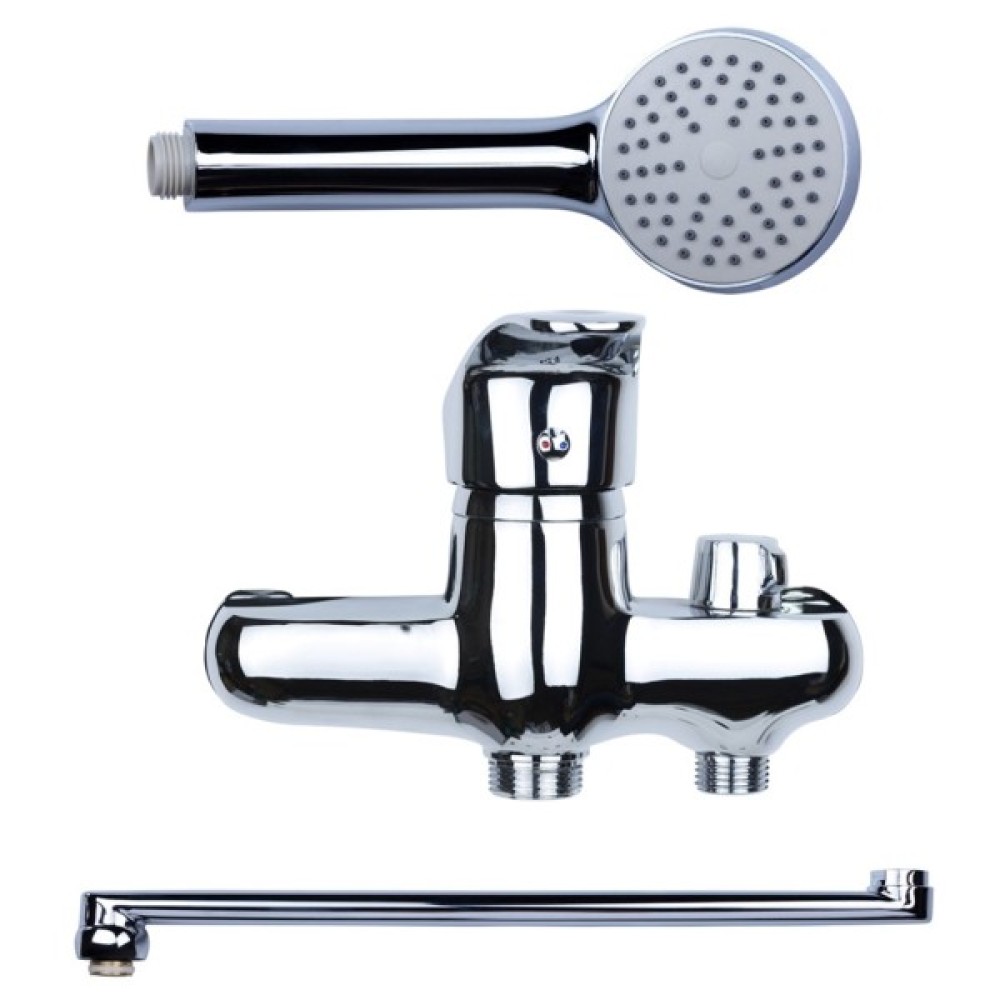 Змішувач комплектується однорежимною ручною лійкою з настінним тримачем і душовим шлангом завдовжки 150 см в металевому обплетенні.