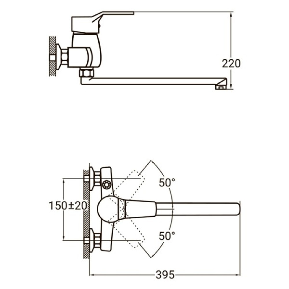 Висота змішувача 220 мм