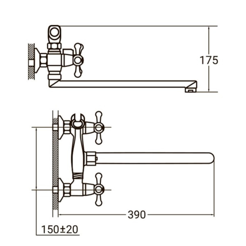 Двовентильний, настінний змішувач для ванни PM-2C257C в хромованому кольорі від Aquatica, має поворотний вилив з виносом 35 см, обладнується переднім перемикачем ванна/душ, встановленим на корпусі тримачем для ручної лійки з інтегрованим із ним боковим відводом для під'єднання душового шланга під діаметр 1/2", і встановлюється на два отвори за допомогою ексцентрикового з'єднання під діаметр 1/2".