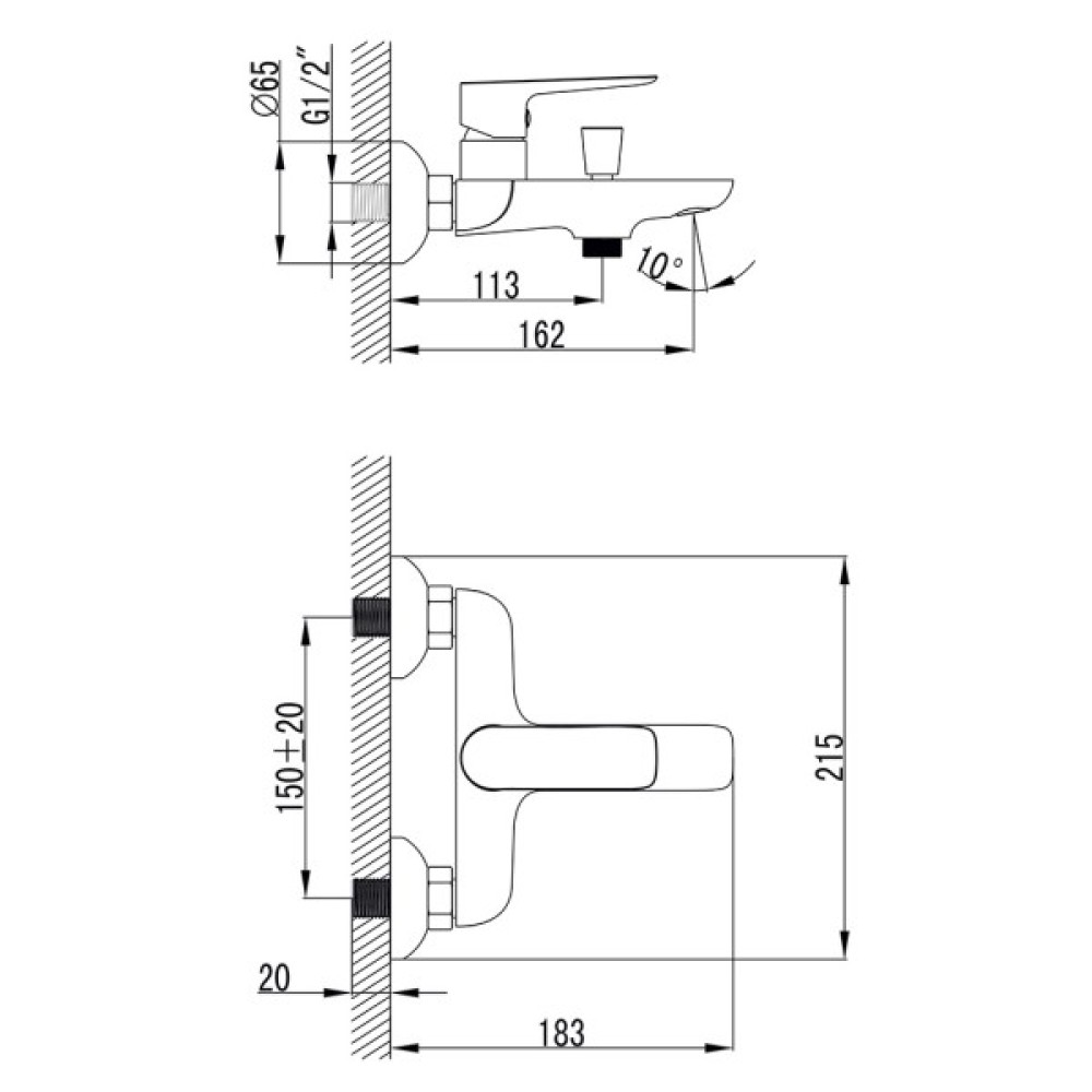 Представлений тут одноважільний настінний змішувач для ванни Lugano CH-1C147C від Corso, виготовлений із високоякісної латуні з покриттям блискучого кольору, має стаціонарний вилив з виносом 16.2 см, обладнується перемикачем ванна/душ і відводом для під'єднання душового шланга під діаметр 1/2".