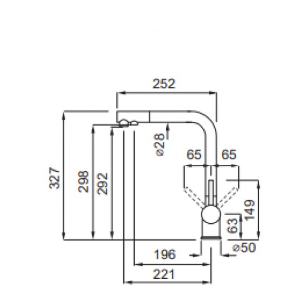 • Висока висота і хороший вилив дозволяють зручно мити великі ємності, каструлі