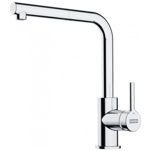 Врізний одноважільний кухонний змішувач Franke Lina L Pull Out (115.0712.420) хром з витяжним шлангом, важелем керування збоку і багаторівневим аератором.