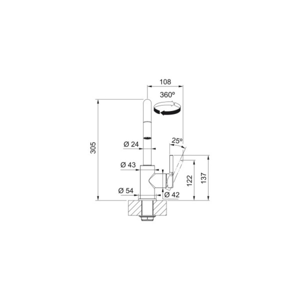 - Поворотний механізм – кут повороту 360 градусів. Це забезпечує максимальну свободу руху, легко адаптується до будь-якого розміщення мийки та дозволяє використовувати змішувач для декількох секцій одночасно.