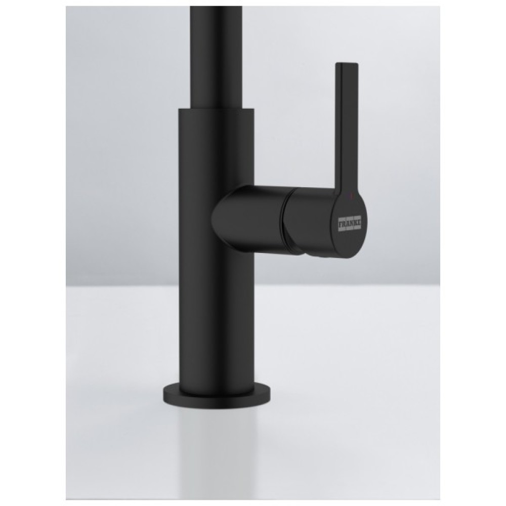 Змішувач Franke Maris Slim J 115.0728.386 чорний матовий ідеально доповнить сучасні, мінімалістичні, індустріальні та лофт-інтер’єри. Він стане ідеальним вибором для стильних кухонь з темною або контрастною палітрою, а також для кухонь з острівною зоною миття й великими мийками. Практичність, надійність та вишуканий вигляд змішувача підкреслять індивідуальність вашого кухонного простору.