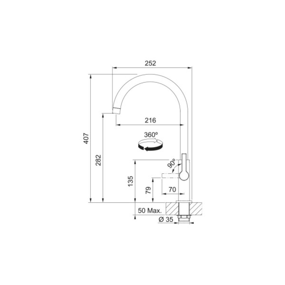 • Кут повороту 360° – змішувач Franke Maris Slim J дозволяє повертати вилив повністю навколо осі, що дарує максимальну свободу під час миття посуду або наповнення великих ємностей.