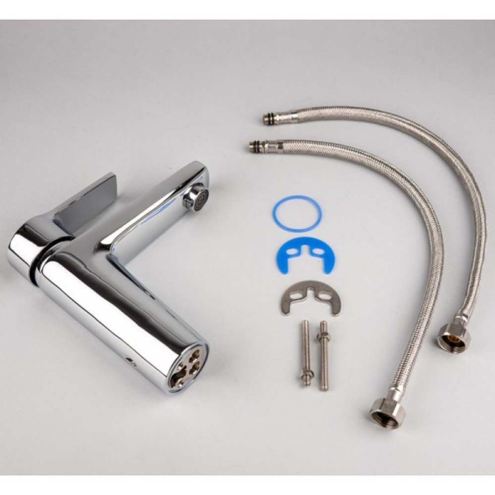 Опис Змішувач для умивальника GH HARLEY Змішувач для умивальника GH - одноважільний змішувач, призначений для раковини з серії HARLEY. Змішування води відбувається під засобом роботи керамічного картриджа 40 мм, а керування ним здійснюється поворотним важелем. Виготовлений із якісної латуні, яка не втрачає своєї зовнішньої привабливості навіть через довгий період експлуатації, хромована поверхня надає змішувачу оригінального зовнішнього вигляду. У комплекті гнучке підведення з гайкою 1/2" дюйма, 40 см.