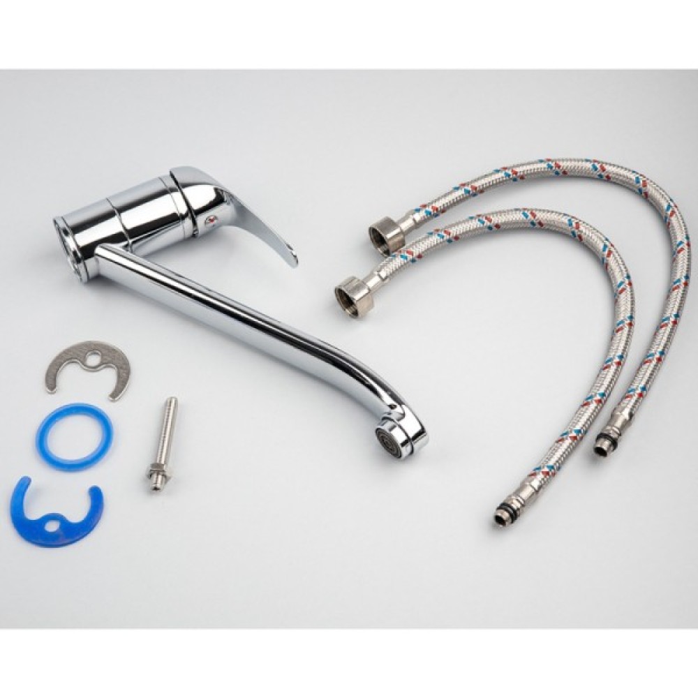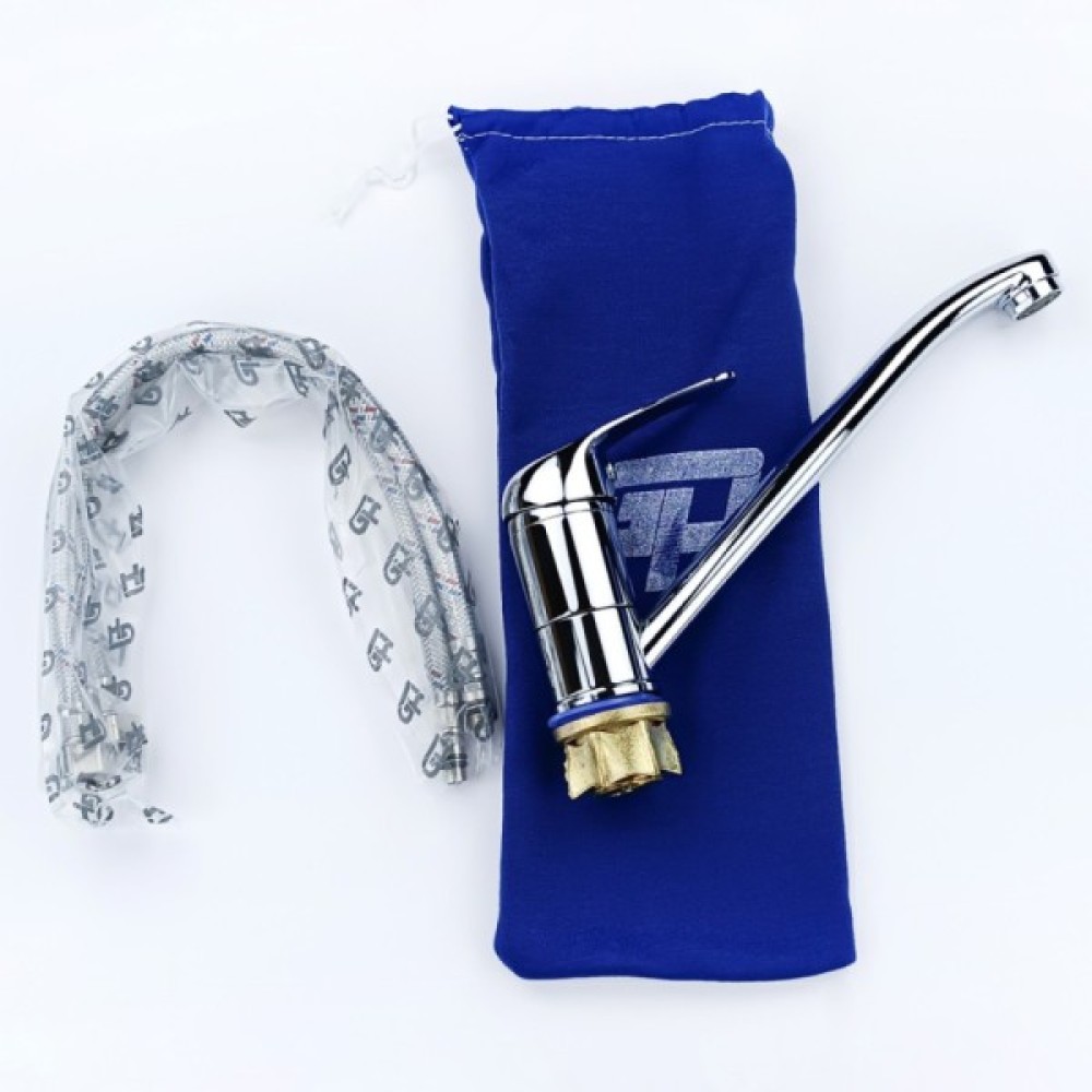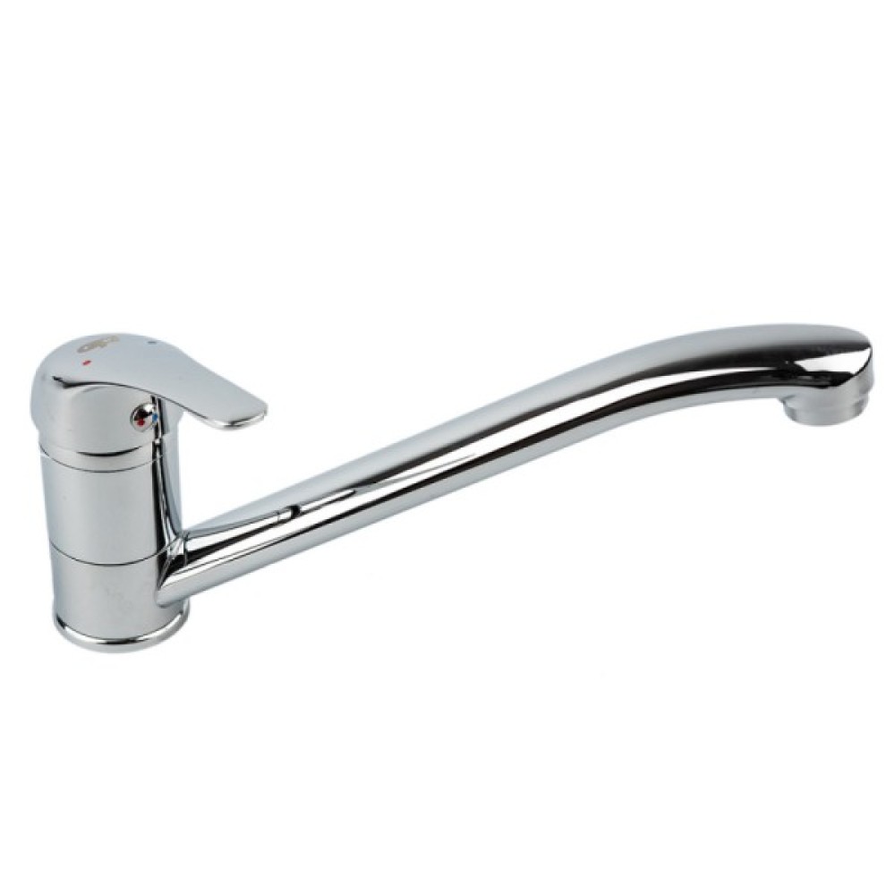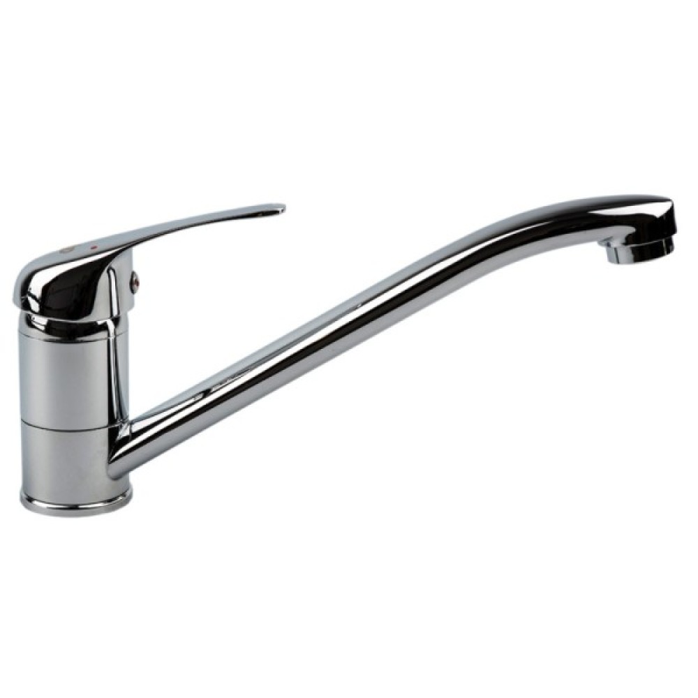 Опис Змішувач для кухні з довгим виливом GH Melode Змішувач для кухні з довгим виливом GH - змішувач змішувач призначений для кухні з серії Melode. Глянцевий хромована поверхня, надає змішувача оригінальний зовнішній вигляд. Інтенсивність водного потоку і температура регулюються за допомогою переміщення важеля який дозволяють швидко налаштувати температурний режим і контролювати натиск. Змішування води відбувається під засобом роботи якісного керамічного картриджа 35 мм. Оснащений досить довгою трубкою виливу, через що під таким краном зручно мити посуд. Гнучка підводка з гайкою 1/2 "дюйма, 40 см. Може встановлюватися на раковину.