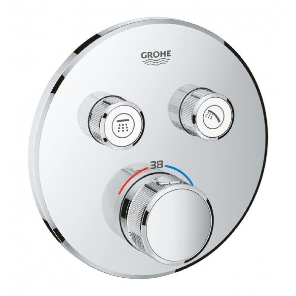 Новаторська технологія GROHE SmartControl® дозволяє здійснювати управління режимами струменя і контролювати бажаний напір води натисканням кнопки і її поворотом відповідно.