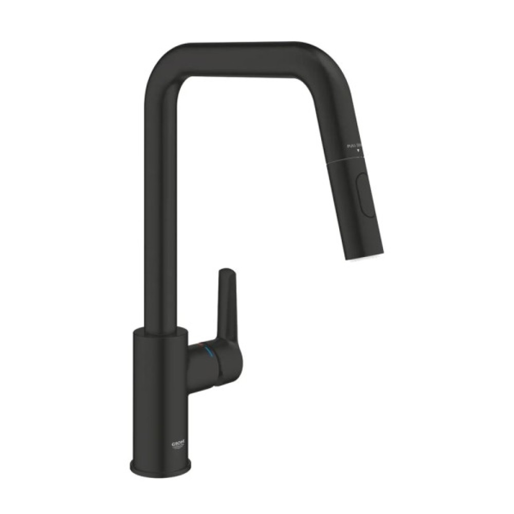 Новий стильний одноважільний змішувач Grohe Start матового чорного кольору з висувним аератором з функцією подвійного розпилення поєднує легке встановлення та високу ефективність.