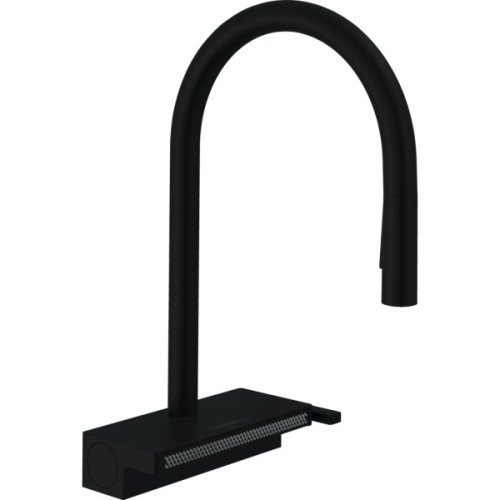 Відкрийте для себе досконалість з кухонним змішувачем HANSGROHE Aquno Select M81 у чорному матовому виконанні! Цей витвір німецького технологічного мистецтва поєднує в собі стильний дизайн, надійність та функціональність, які зроблять вашу кухню справжнім місцем задоволення.