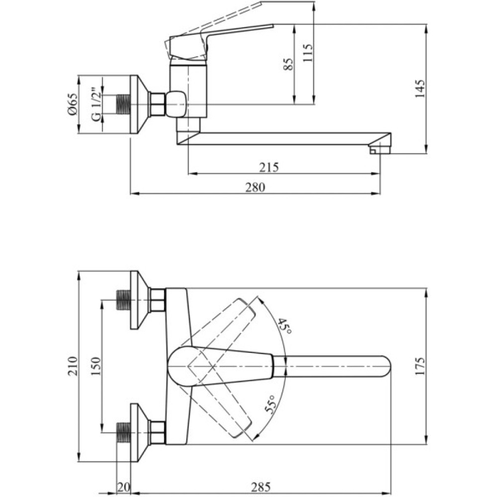 Висота змішувача 145 мм