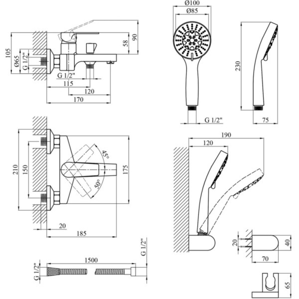 Комплект поставки змішувач; душовий шланг; кріплення; інструкція; лійка для ручного душу