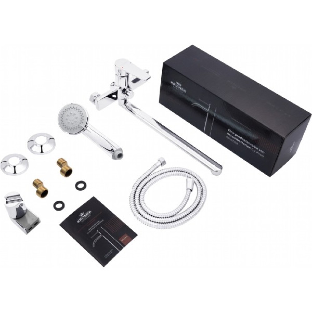 Змішувач для ванни KRONER (KRP) Eifel-C070 виготовлений із міцної та зносостійкої латуні з рівномірним хромованим покриттям, завдяки якому виріб має привабливий зовнішній вигляд та більш стійкий до механічних пошкоджень.