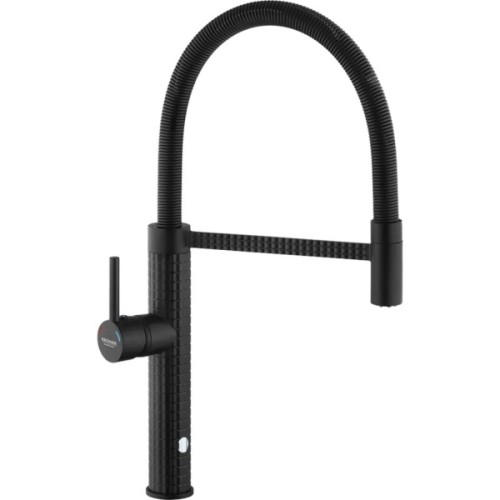 Змішувач для кухні Kroner KRP Ersel - SCH03999 поєднує в собі елегантний матовий корпус чорного кольору з функціональним чорним рефлекторним виливом, що робить його ідеальним вибором для будь-якої сучасної кухні.