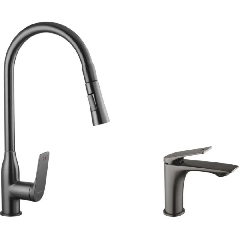 Набір поєднує два змішувачі серії Kroner Graz, виконані в єдиному мінімалістичному стилі. Це ідеальне рішення для облаштування ванної кімнати або суміщеної зони, де потрібні змішувачі для душу/ванни та умивальника. Обидва вироби виготовлені з якісної латуні з хромованим покриттям та оснащені довговічними керамічними картриджами.