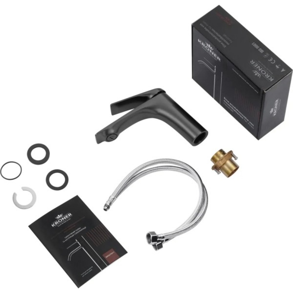 Змішувач Kroner KRP Graz - SCH010 виготовлений із високоякісної латуні, що забезпечує міцність і довговічність виробу. Литий вилив підвищує надійність конструкції та запобігає можливим протіканням. Модель має елегантну матову поверхню, яка додає сучасного вигляду ванній кімнаті. Глибокий чорний колір створює стильний акцент у вашому інтер’єрі.