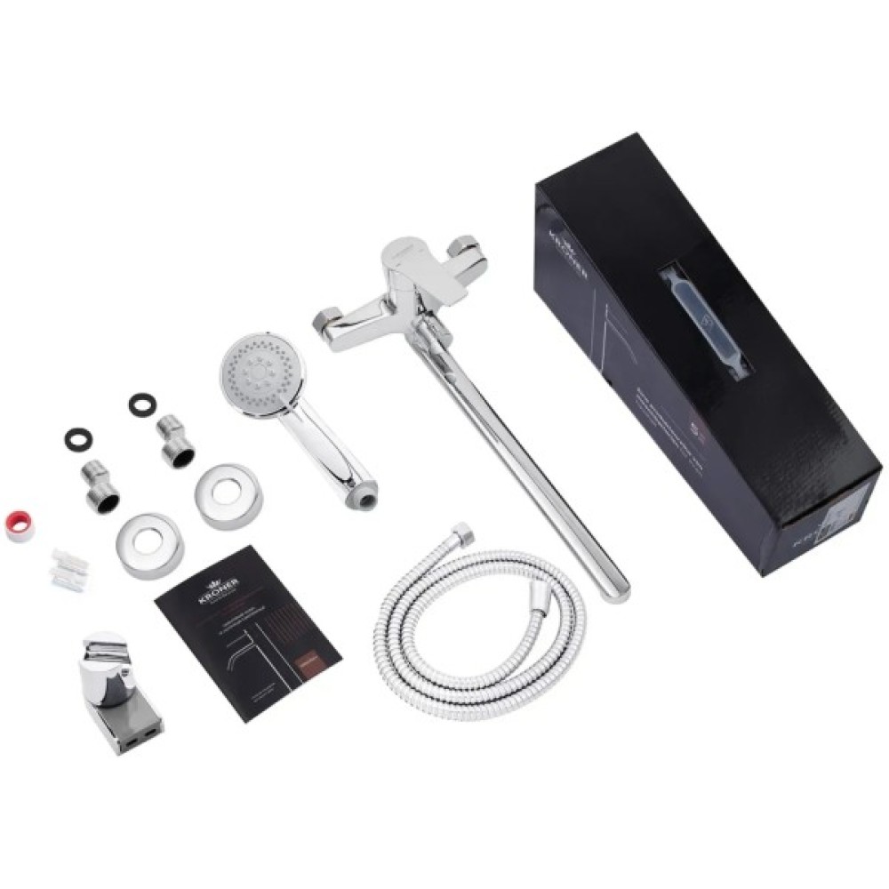 - Душовий гарнітур в комплекті: Повна комплектація включає душовий гарнітур, що робить змішувач універсальним рішенням для ванни та душу.