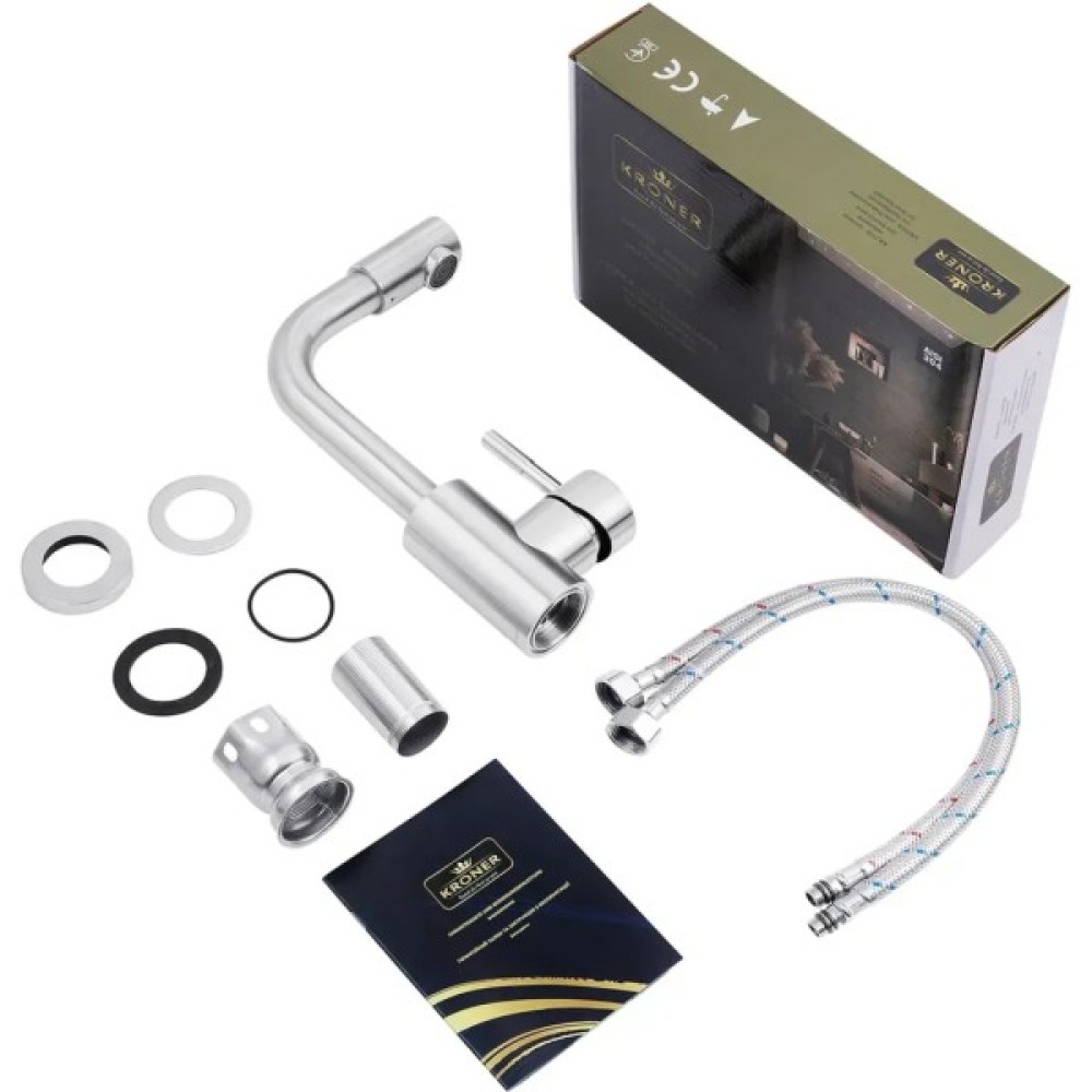Змішувач для раковини Kroner KRP Edelstahl Klassisch - ESG012 - стильний та практичний вибір для вашої ванної кімнати. Виготовлений з високоякісної нержавіючої сталі, він гарантує довговічність та стійкість до корозії. Привабливий брашований нікелевий колір додає йому елегантності та сучасного вигляду. Картриджний механізм змішування забезпечує плавне регулювання температури води. Врізний спосіб монтажу дозволяє зберігати естетичний вигляд раковини. Змішувач Kroner - це стильний акцент, що надасть вашому дизайну особливої гармонії і розкоші.