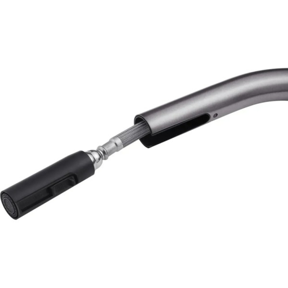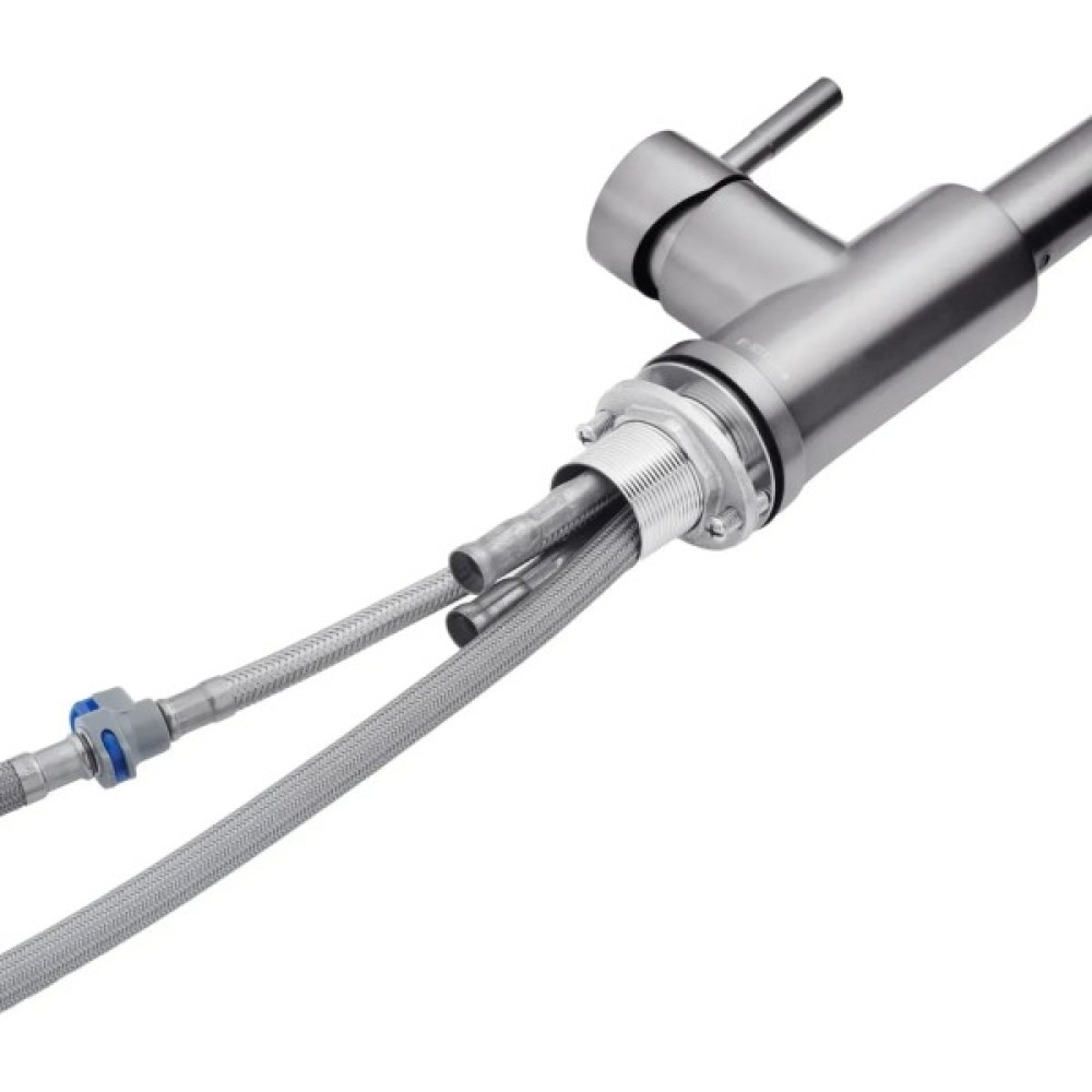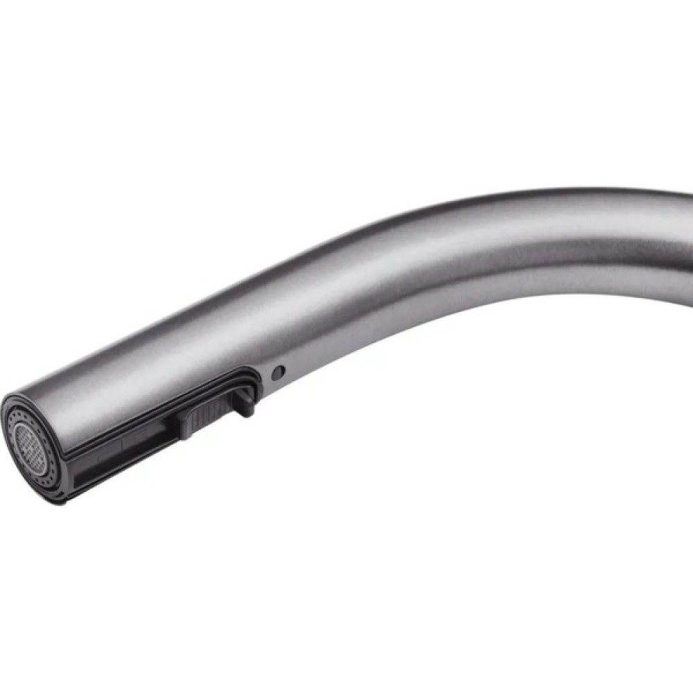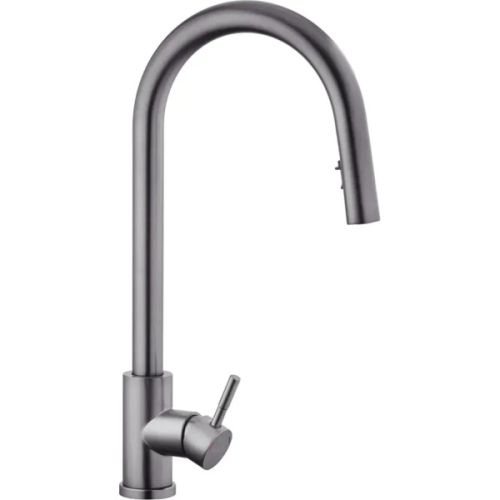 Змішувач для кухні з висувним виливом Kroner KRP Edelstahl Klassisch - PVD03915 - це вишуканий виріб з нержавіючої сталі, що поєднує в собі естетику та функціональність. Чудово підійде для сучасних кухонь. Завдяки одноважільному управлінню та врізному способу монтажу він легко інтегрується у ваш простір. Брашована поверхня та U-подібна форма виливу надають йому елегантного вигляду. Змішувач оснащений висувним/поворотним виливом, що забезпечує зручність використання. Механізм змішування з картриджем діаметром 35 мм гарантує надійність та довговічність. У комплектацію входять гнучка підводка, шланг для висувної лійки, лійка, якір та кріплення, що робить процес установки простим та зручним. Цей змішувач відповідає високим стандартам зручності та стилю на сучасній кухні.