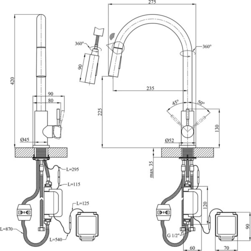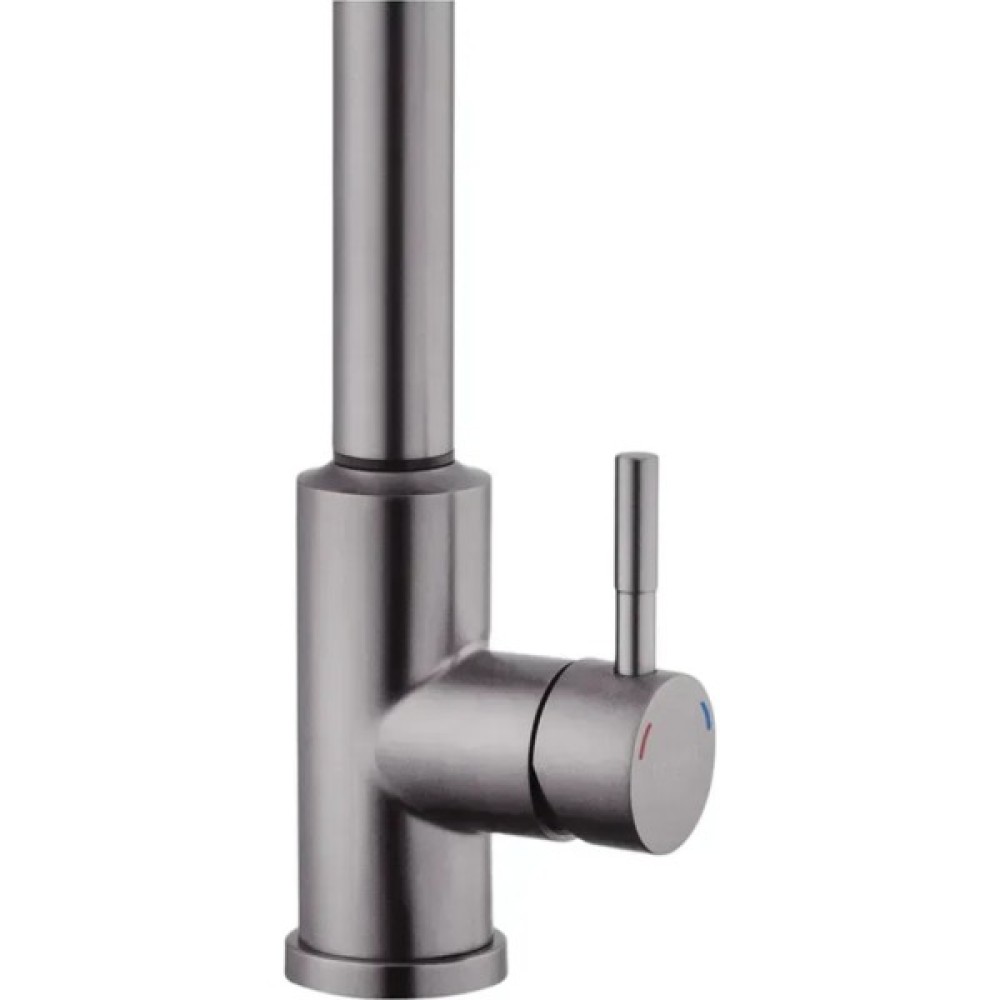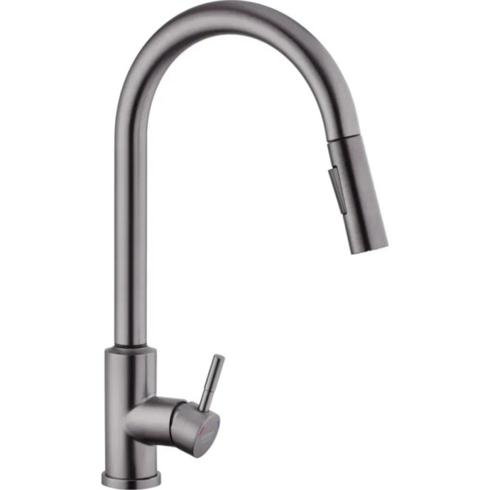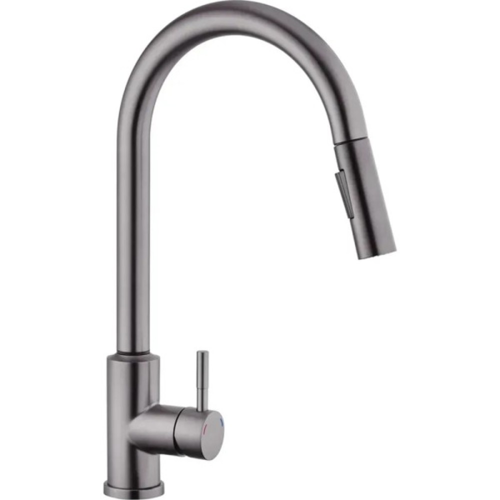 Змішувач має лаконічний дизайн та високу функціональність. Висувна лійка має шарнір, що забезпечує обертання на 360 градусів. Два режими розпилення – від потокового струменя без бризок до потужного струменя душу – дозволяють ефективно виконувати різні завдання, такі як ополіскування посуду або видалення забруднень.