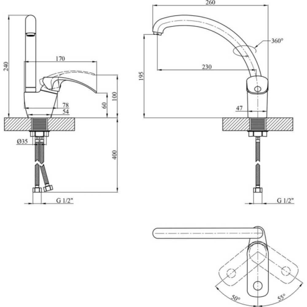 Висота змішувача 240 мм