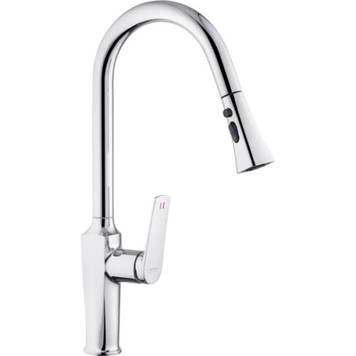 Змішувач для кухні Kroner KRP Makon - C030-T із серії Makon вирізняється стильним дизайном, високою якістю та зручністю у використанні. Виготовлений із міцної латуні з глянцевим хромованим покриттям, він не лише виглядає елегантно, але й стійкий до корозії та зношування.