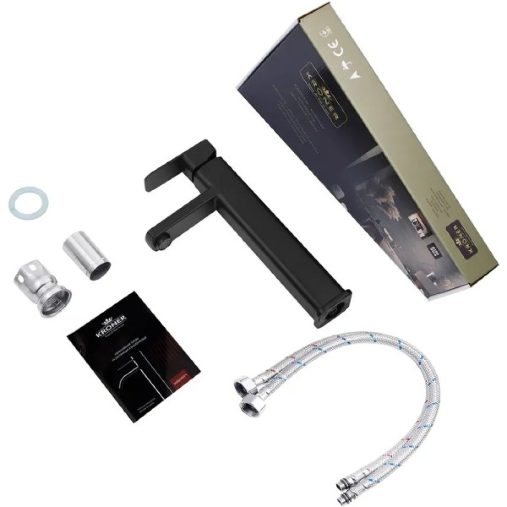 Змішувач для раковини Kroner KRP Edelstahl Kubus – SCH010-3 сучасний стиль та функціональність в одному образі. Високий вилив 200 мм забезпечує зручність використання, а його чорний матовий колір надає вашій ванній кімнаті елегантності та вишуканості. Матеріал виготовлення - нержавіюча сталь - гарантує міцність та тривалий термін служби.