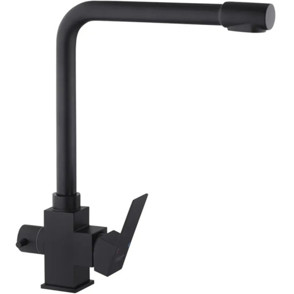 Змішувач для кухні з підключенням до фільтру Kroner KRP Edelstahl Kubus - SCH03810 виготовлений з високоякісної нержавіючої сталі, яка не піддається корозії, стійка до ударів та появи тріщин. Змішувач має Г-подібну форму з трьома контурами підключення води. За участю першого та другого здійснюється підключення холодної та гарячої води, де змішування відбувається за допомогою картриджа.