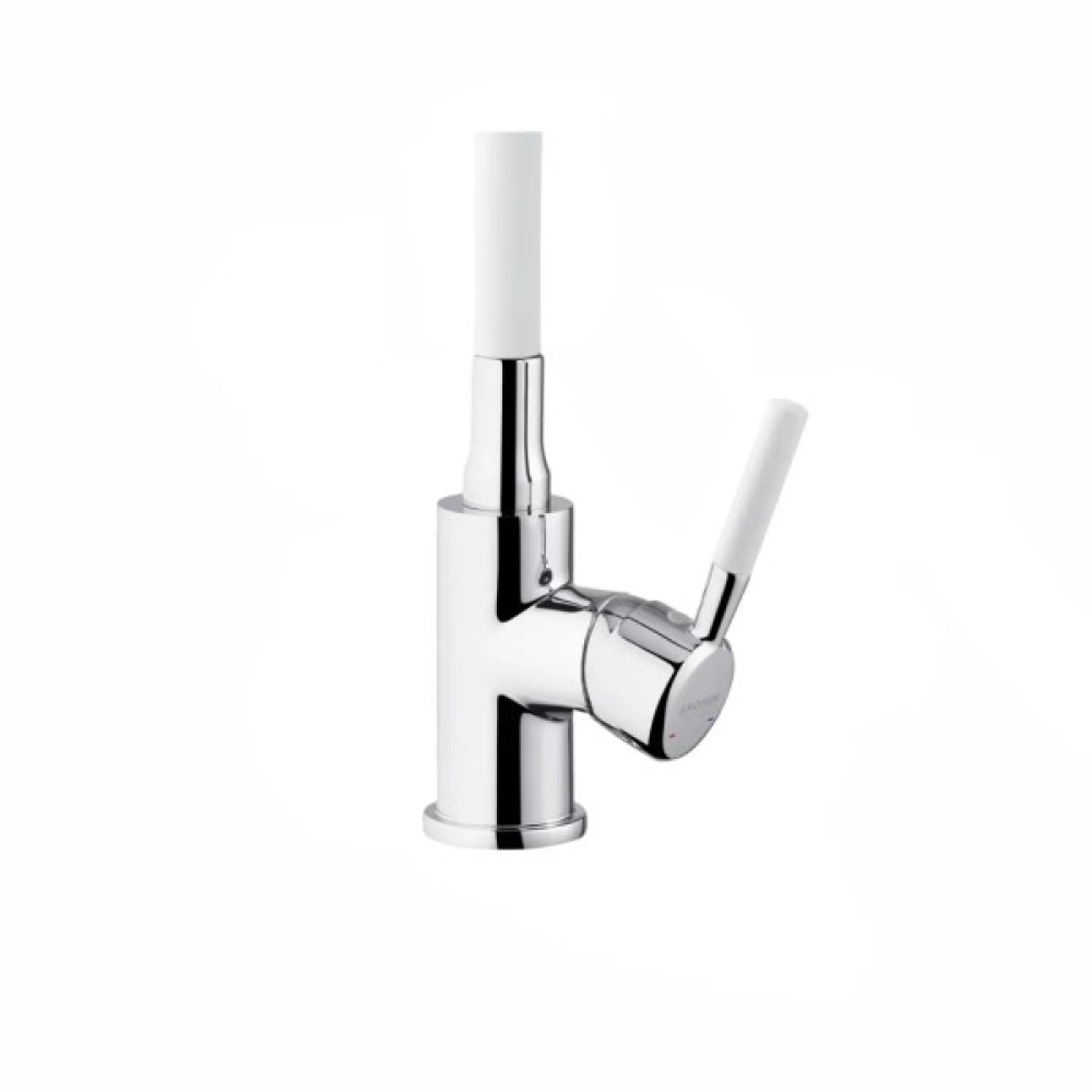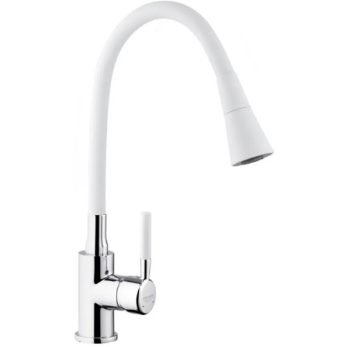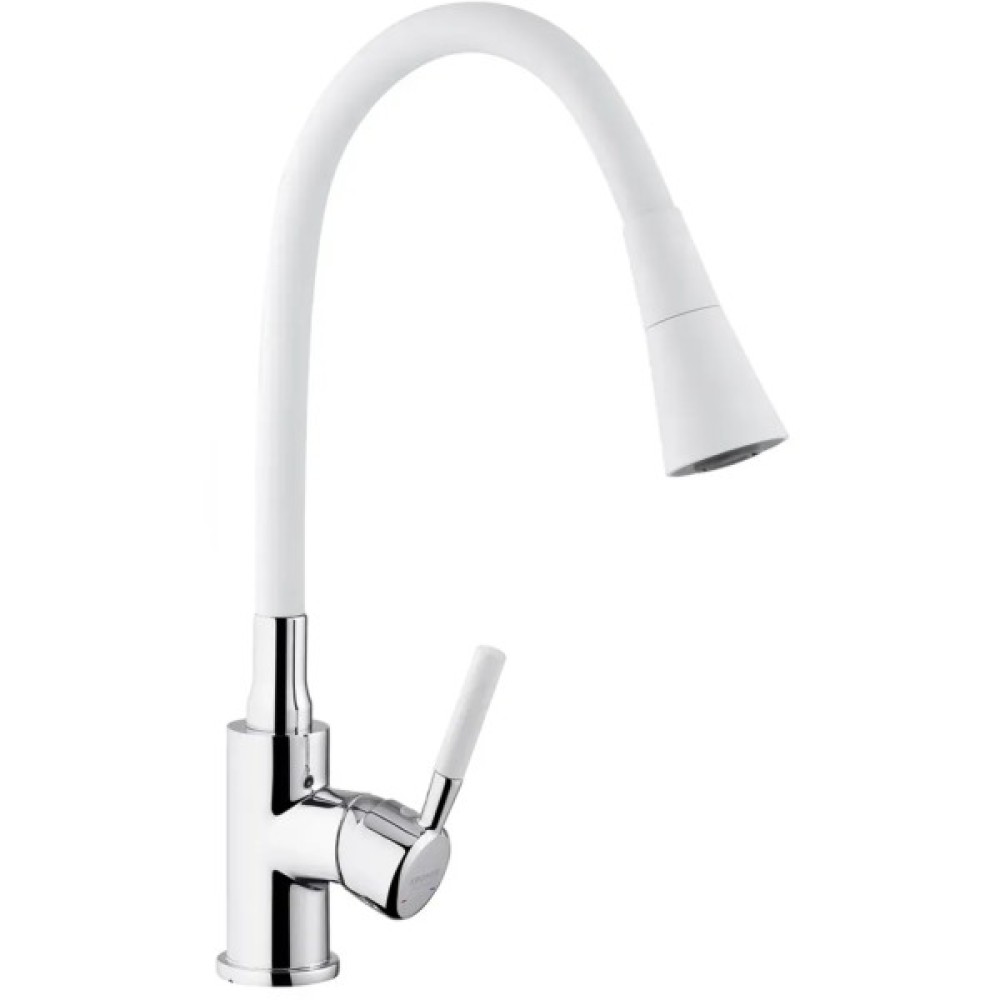 Змішувач для кухні Kroner KRM Kuche - C132WHI - це стильний та функціональний варіант для вашої кухні. Виготовлений з високоякісного силуміну з силіконовим виливом, він поєднує міцність і зручність в експлуатації. Одноважільне керування дозволяє легко регулювати температуру і потік води.