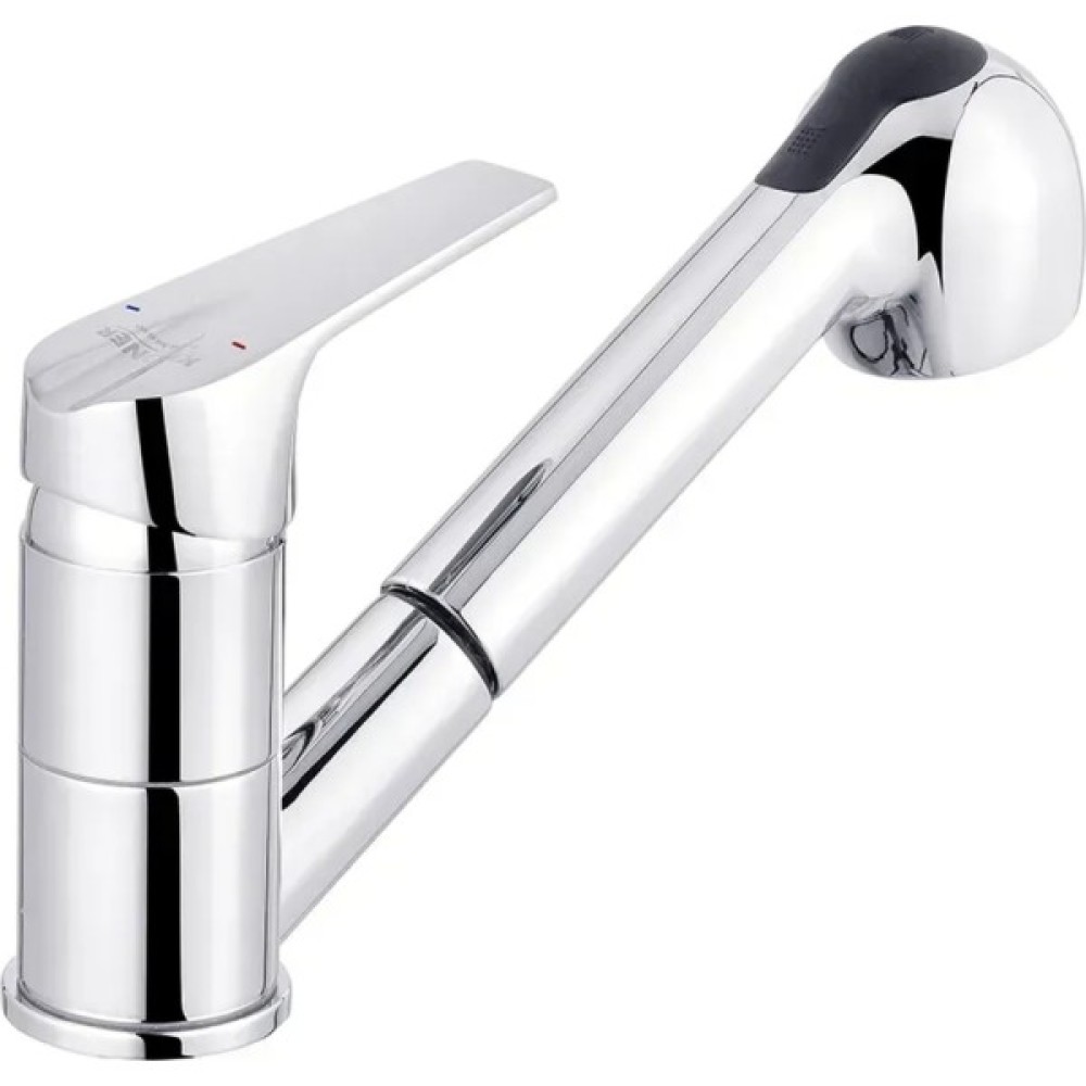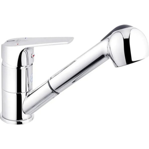 Змішувач для кухні з висувним виливом Kroner KRM Odra - C030-T - ідеальний вибір для вашої кухні. Виготовлений з високоякісного силуміну, він гарантує міцність та довговічність. Має привабливий глянцевий хромований колір, що додає йому елегантності. Змішувач оснащений картриджним механізмом змішування, що дозволяє зручно регулювати температуру води. Його унікальна V-подібна форма виливу забезпечує зручність під час наповнення посуду або миття продуктів. Насолоджуйтесь функціональністю і стилем змішувача Kroner.