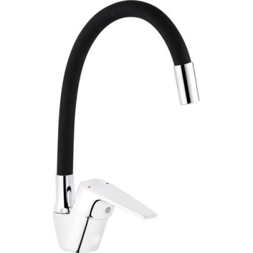Змішувач для кухні Kroner KRM Odra - C032BLK- ідеальний вибір для вашої кухні. Виготовлений з високоякісного силуміну, він гарантує міцність та довговічність. Має привабливий глянцевий хромовано-чорний колір, що додає йому елегантності. Змішувач оснащений картриджним механізмом змішування, що дозволяє зручно регулювати температуру води. Його унікальна U-подібна форма виливу забезпечує зручність під час наповнення посуду або миття продуктів. Насолоджуйтесь функціональністю і стилем змішувача Kroner.