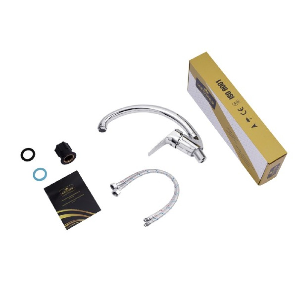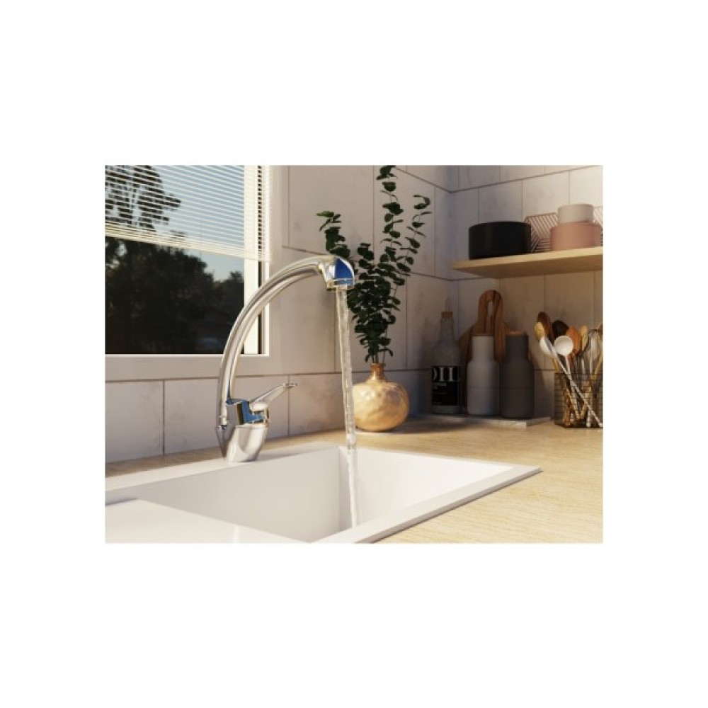Змішувач для кухні Kroner KRM Odra - C036 - ідеальний вибір для вашої кухні. Виготовлений з високоякісного силуміну, він гарантує міцність та довговічність. Має привабливий глянцевий хромований колір, що додає йому елегантності. Змішувач оснащений картриджним механізмом змішування, що дозволяє зручно регулювати температуру води. Його унікальна С-подібна форма виливу забезпечує зручність під час наповнення посуду або миття продуктів. Насолоджуйтесь функціональністю і стилем змішувача Kroner.