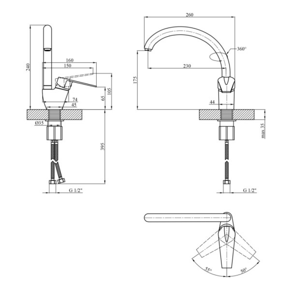 аератор; гнучка підводка; керамічний картридж 40 мм; витрата води до 13 л/хв