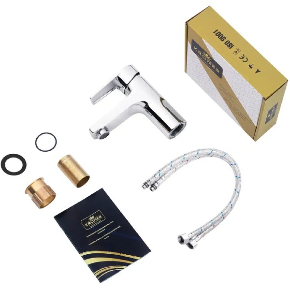 Змішувач для раковини Kroner KRM Oker - C010 - стильний та практичний вибір для вашої ванної кімнати. Виготовлений з високоякісного силуміну, він гарантує довговічність та надійність. Привабливий хромований колір додає йому елегантності та сучасного вигляду. Картриджний механізм змішування забезпечує плавне регулювання температури води. Врізний спосіб монтажу дозволяє зберігати естетичний вигляд раковини, а глянцева поверхня додає блиску і гарантує легку очистку. Змішувач Kroner - це стильний акцент, що надасть вашому дизайну особливої гармонії і розкоші.