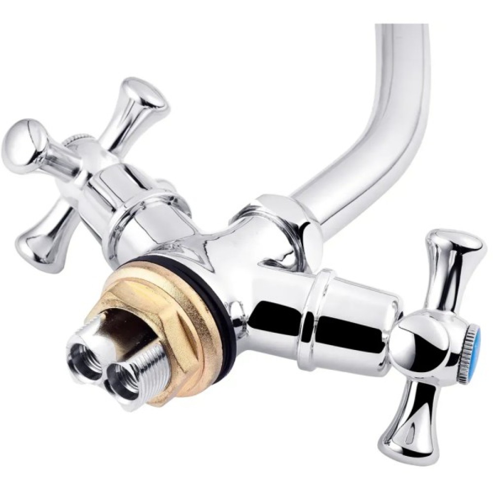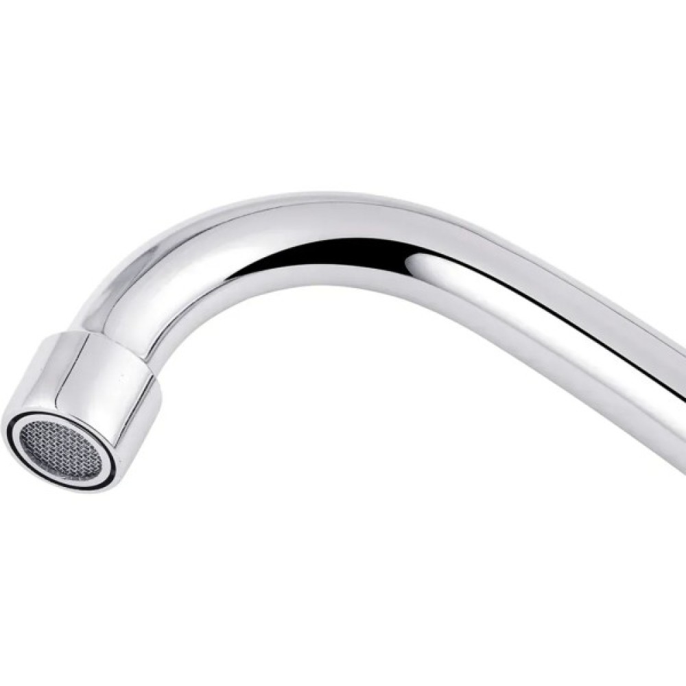 Змішувач для кухні Kroner KRM Rhein - C030 - ідеальний вибір для вашої кухні. Виготовлений з високоякісного силуміну, він забезпечує надійність та довговічність використання. Хромований колір і глянцева поверхня надають йому стильний вигляд, вписуючись в будь-який дизайн кухні. Форма С-подібного виливу дозволяє легко наповнювати великі каструлі і зручно мити посуд. Механізм змішування на основі кран-букси сприяє точному регулюванню температури води. Насолоджуйтесь функціональністю і стилем змішувача Kroner.