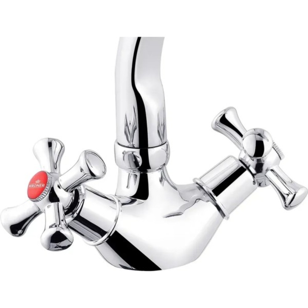 Змішувач для кухні Kroner KRM Rhein - C033 - ідеальний вибір для вашої кухні. Виготовлений з високоякісного силуміну, він забезпечує надійність та довговічність використання. Хромований колір і глянцева поверхня надають йому стильний вигляд, вписуючись в будь-який дизайн кухні. Форма Г-подібного виливу дозволяє легко наповнювати великі каструлі і зручно мити посуд. Механізм змішування на основі кран-букси сприяє точному регулюванню температури води. Насолоджуйтесь функціональністю і стилем змішувача Kroner.