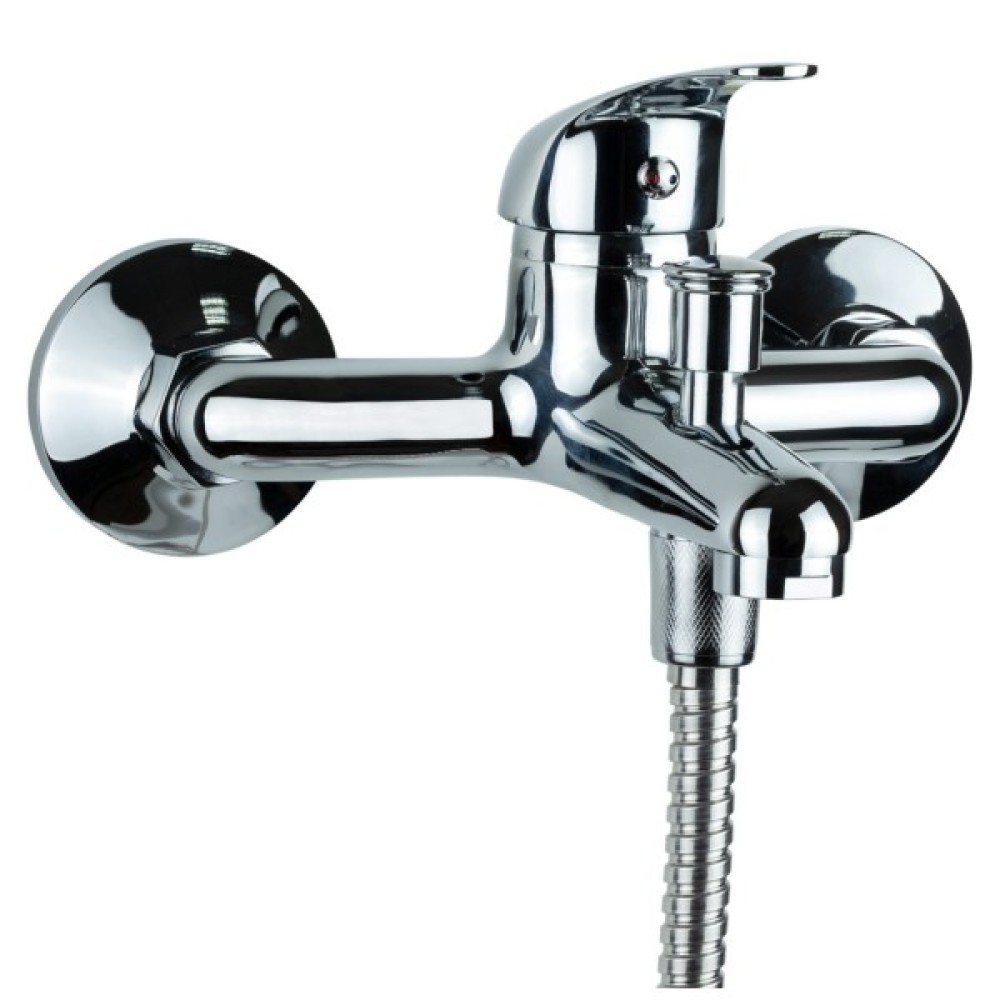 Одноважільний, настінний змішувач для ванни TN-1C142C в хромованому кольорі від Tau, має стаціонарний вилив з виносом 11 см, обладнується верхнім перемикачем ванна/душ, нижнім відведенням для під'єднання душового шланга під діаметр 1/2", і встановлюється на два отвори за допомогою ексцентрикового з'єднання під діаметр 1/2".