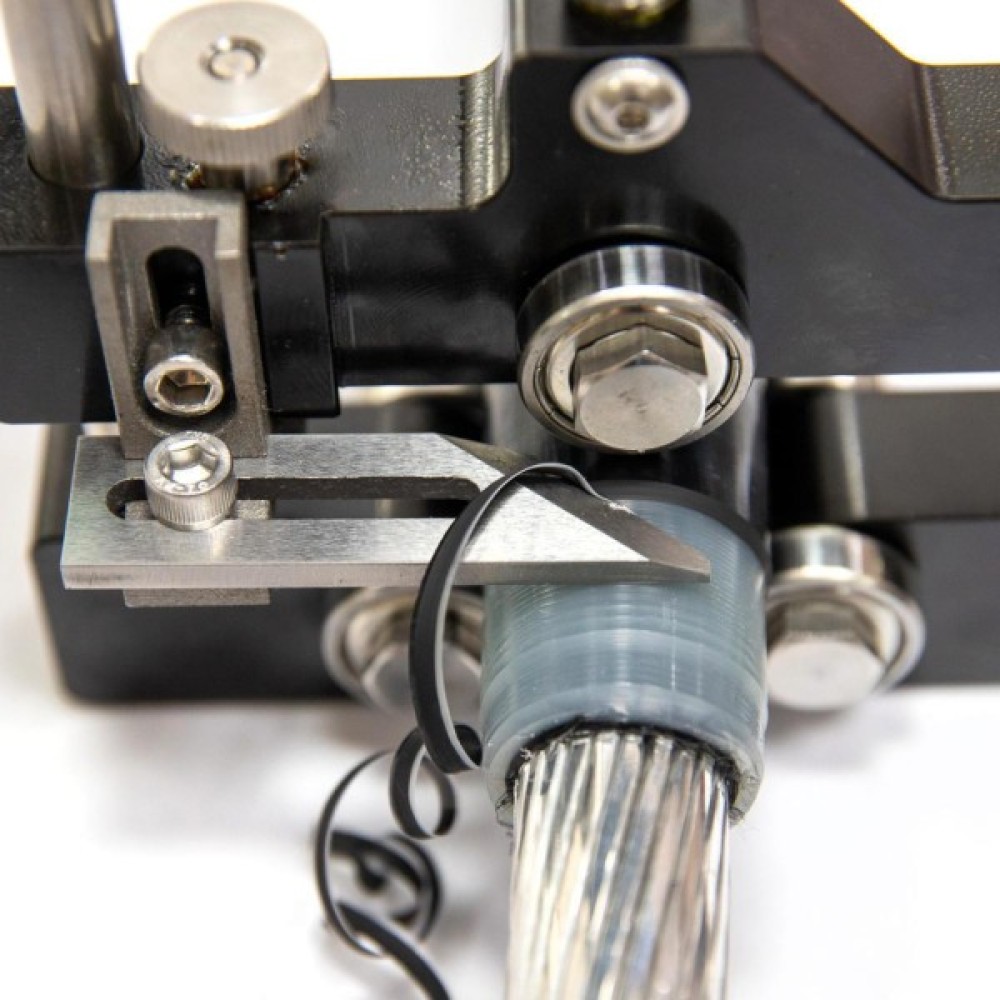 Цей інструмент стане ідеальним вибором для фахівців, які працюють із високовольтними кабелями великого діаметра, забезпечуючи ефективне та надійне зняття напівпровідного екрана.