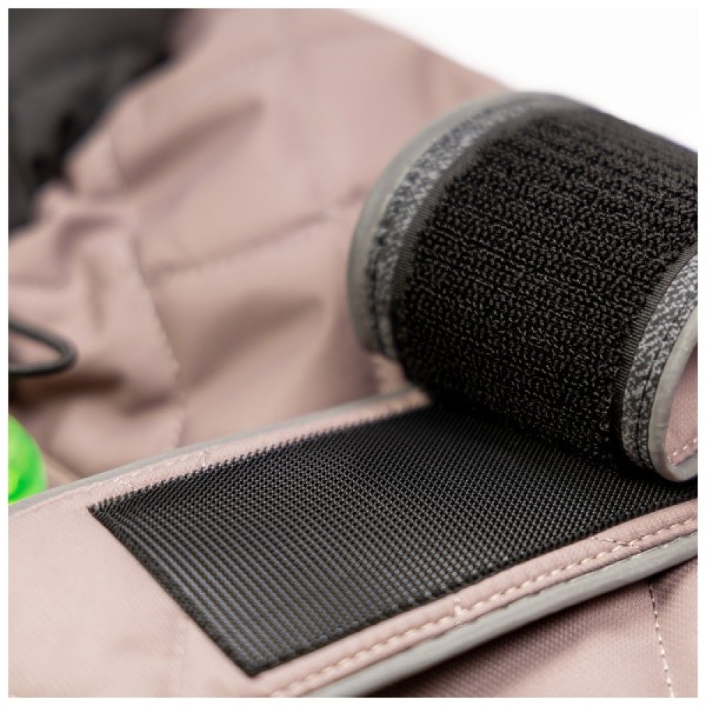 Водонепроникна тканина, гіпоалергенний утеплювач, капюшон для захисту голови від дощу дозволяють песику добре почуватися у негоду. М’які петлі для задніх лап запобігають ковзанню попони, покращують прилягання одягу до тіла. Світловідбивні деталі та світлодіод на спинці робить прогулянки в темряві безпечнішими. На спинці є отвір для повідця.